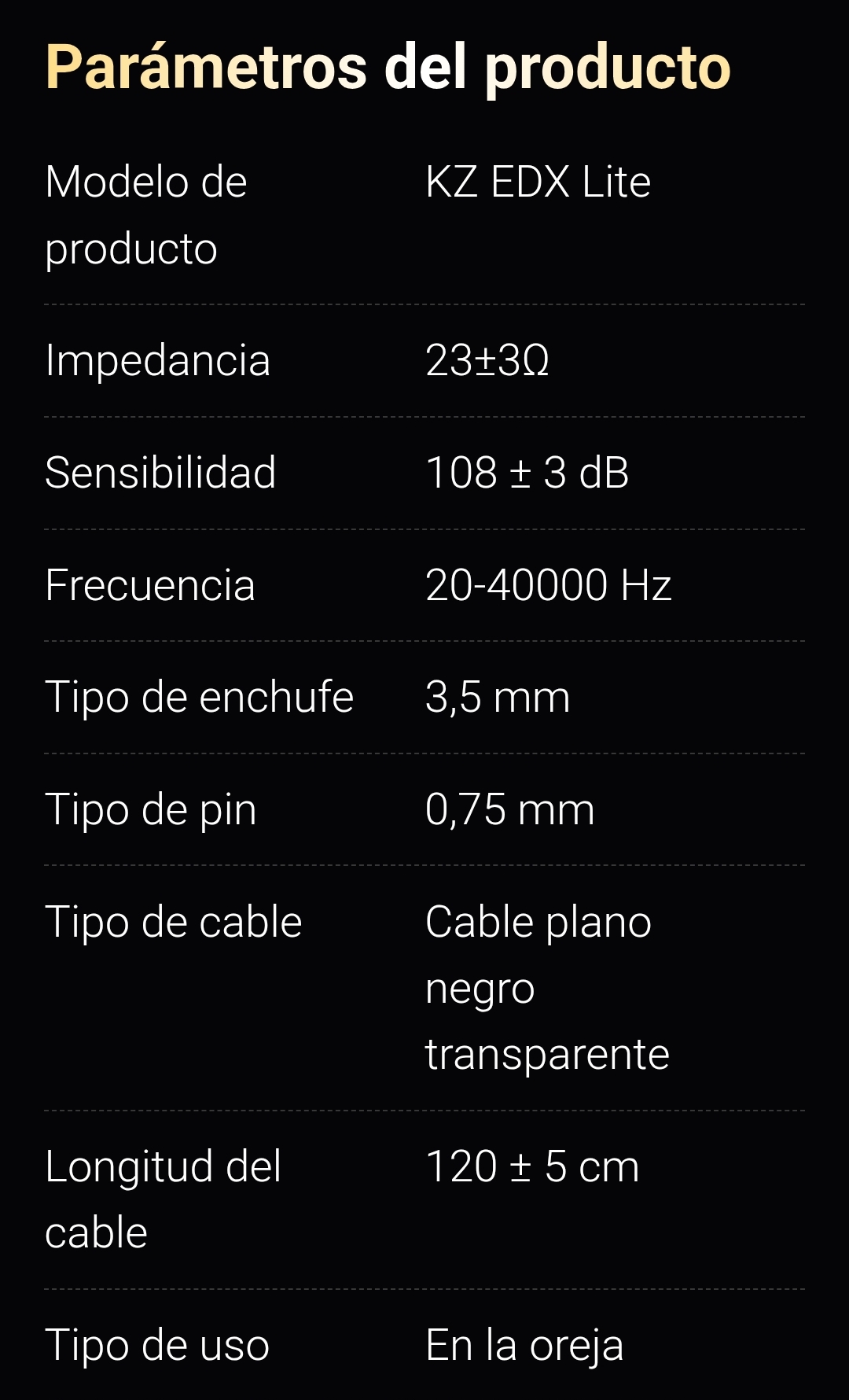 KZ EDX Lite Diseñado para todos los audiófilos que buscan opciones más rentables La unidad de controlador dinámico superlineal Excelente rendimiento acústico Diseño desmontable Cable OFC de calidad profesional Diseño ergonómico Micrófono de alta definición Ver más...