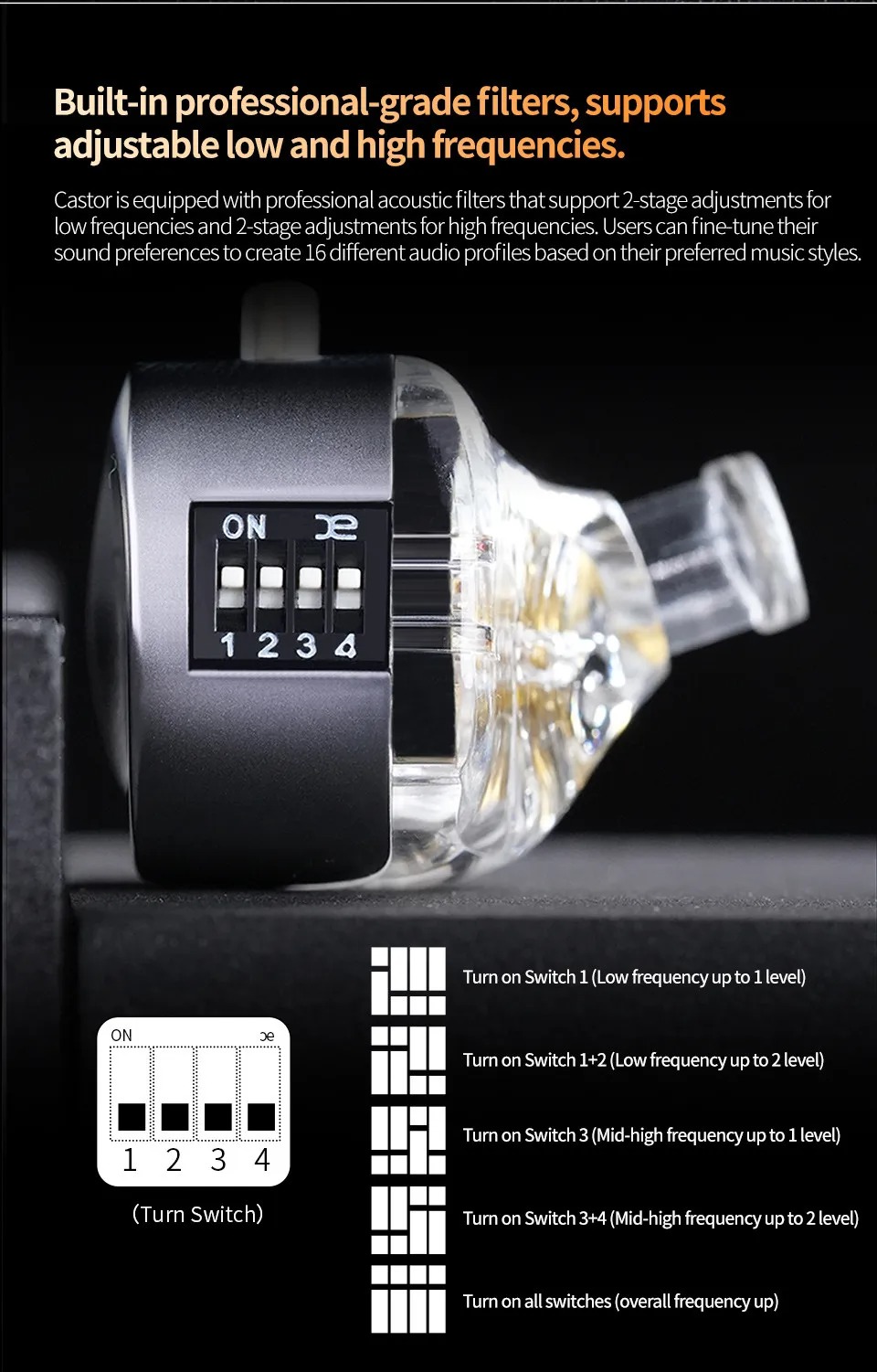 IEM de controlador dinámico único que supera por completo Controladores dinámicos grandes de doble núcleo de 10 mm + 10 mm Tecnología de cruce electrónico profesional Filtro de sintonización electrónico de cuatro niveles de alta precisión Un nuevo referente para la calidad del sonido Hi-Fi Ver más...